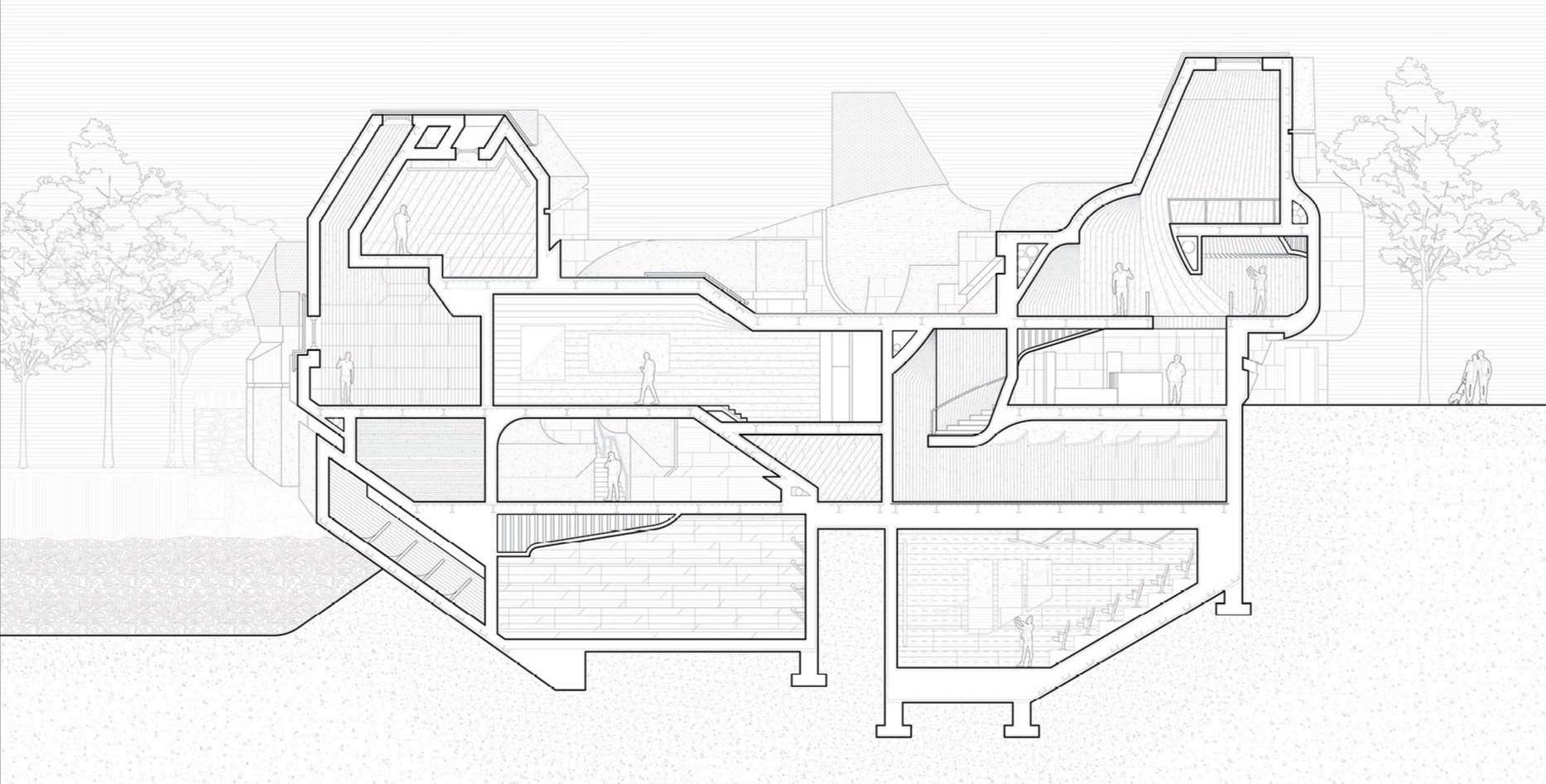 The primary focus of the project is on an assemblage of figures. Procedurally generated masses are arranged to fit a series of criteria including alignment with the axes of the site, maintaining the walk-ability of the area, and view-making. The second operation fractures the mass based on the programmatic needs of the museum and boat house. This approach of 3-dimensional spatial planning isn’t antithetical to the raumplan however the fragmentation of these spaces directly articulates the exterior.