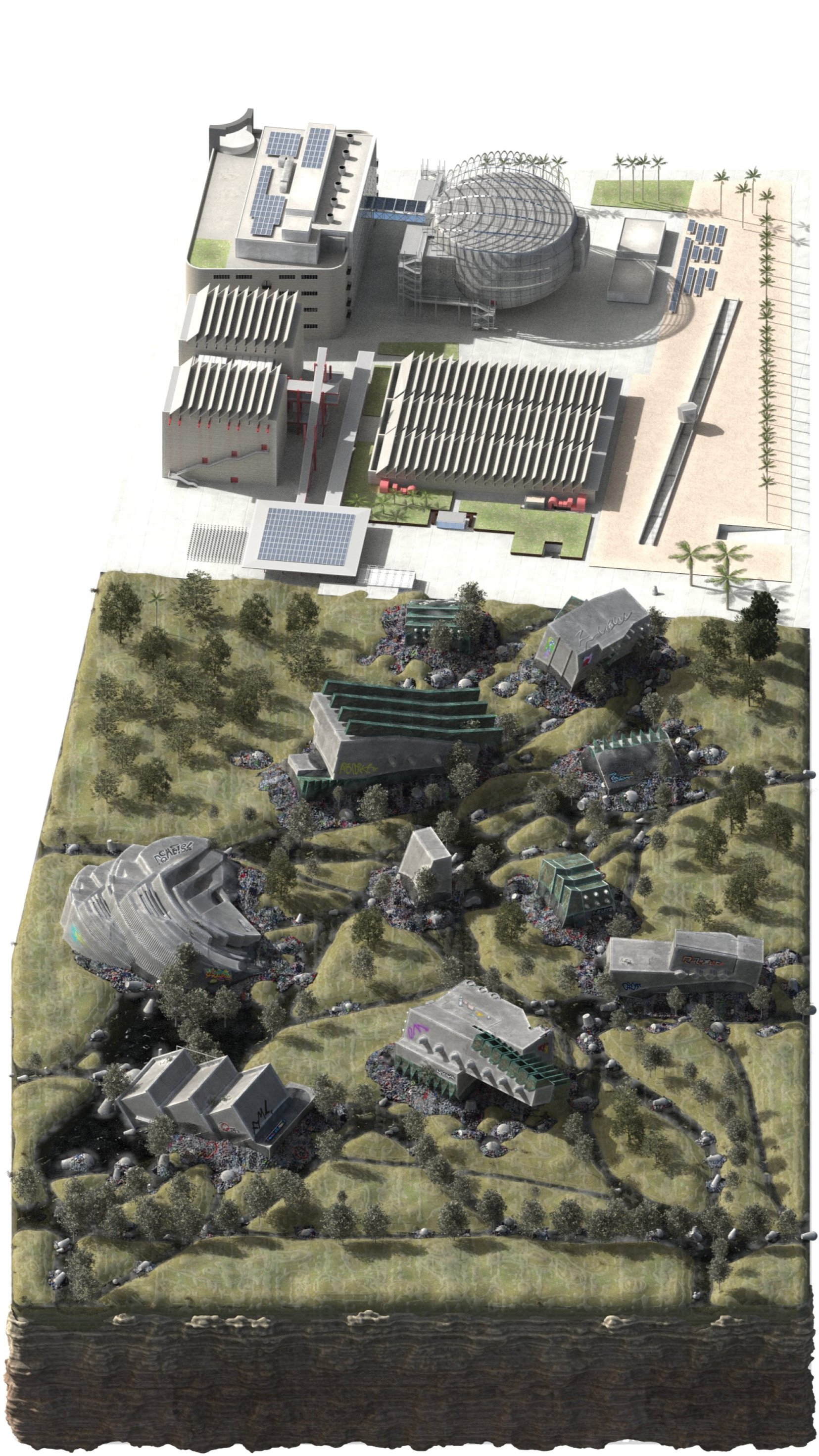 Site Oblique 1:Showing Site in relation to LACMA and the paths the objects take