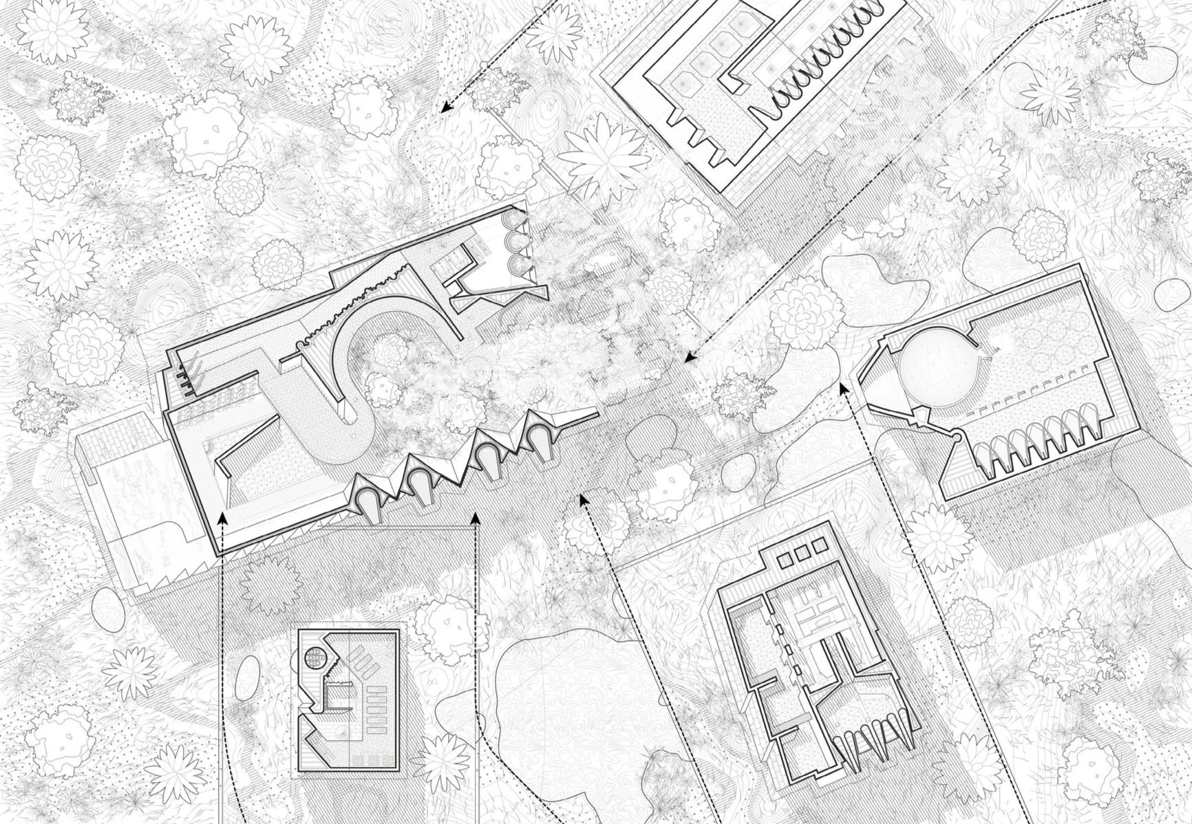 The primary focus of the project is on an assemblage of figures. Procedurally generated masses are arranged to fit a series of criteria including alignment with the axes of the site, maintaining the walk-ability of the area, and view-making. The second operation fractures the mass based on the programmatic needs of the museum and boat house. This approach of 3-dimensional spatial planning isn’t antithetical to the raumplan however the fragmentation of these spaces directly articulates the exterior.