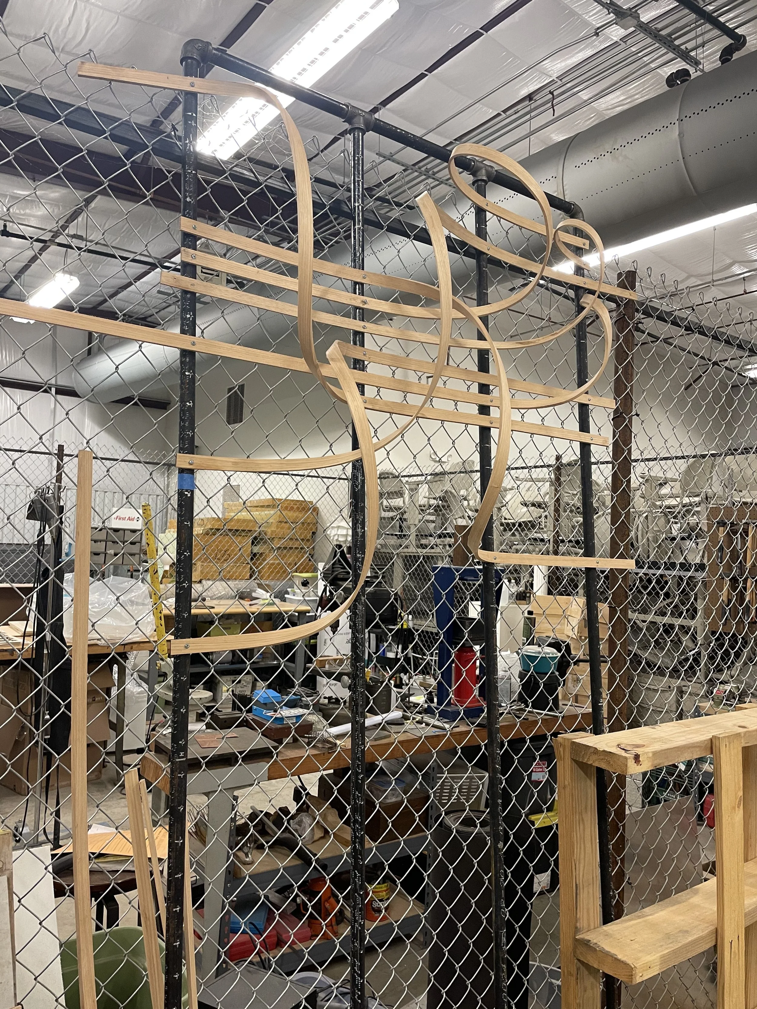 The objective of this applied material research was to evaluate the design advantages and constraints of wood bending. We sought to explore the material properties of steam bending and how we might apply these processes to similar manufacturing techniques.