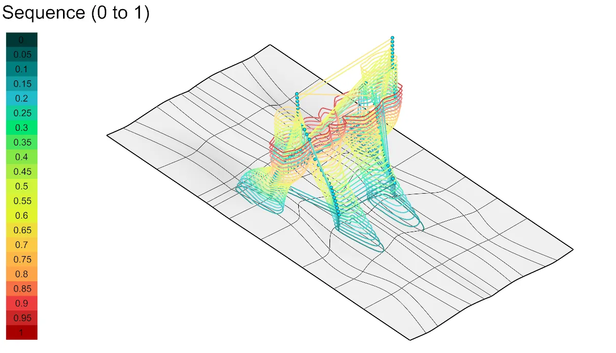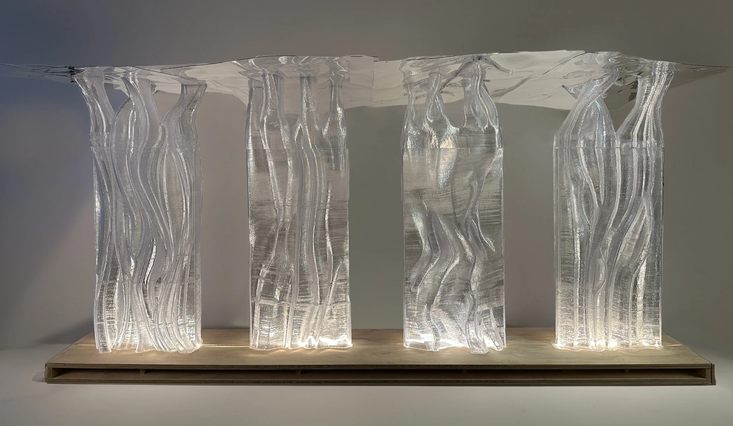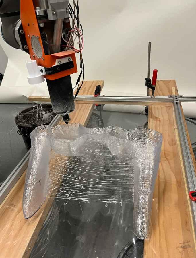 //Robotic Fabrication Instructor Rob Stuart-Smith TA: Franklin Wu Partner: Brennan Flory // Instructor Rob Stuart-Smith TA: Franklin Wu Partner: Brennan Flory // Instructor Rob Stuart-Smith TA: Franklin Wu Partner: Brennan Flory // Duration:1 SemesterLocation:University of PennsylvaniaProgram:Installation Utilizing nonplanar robotic 3d printing techniques paired with variable pneumatic thermaforming to create a series of wall and canopy conditions. //Gallery